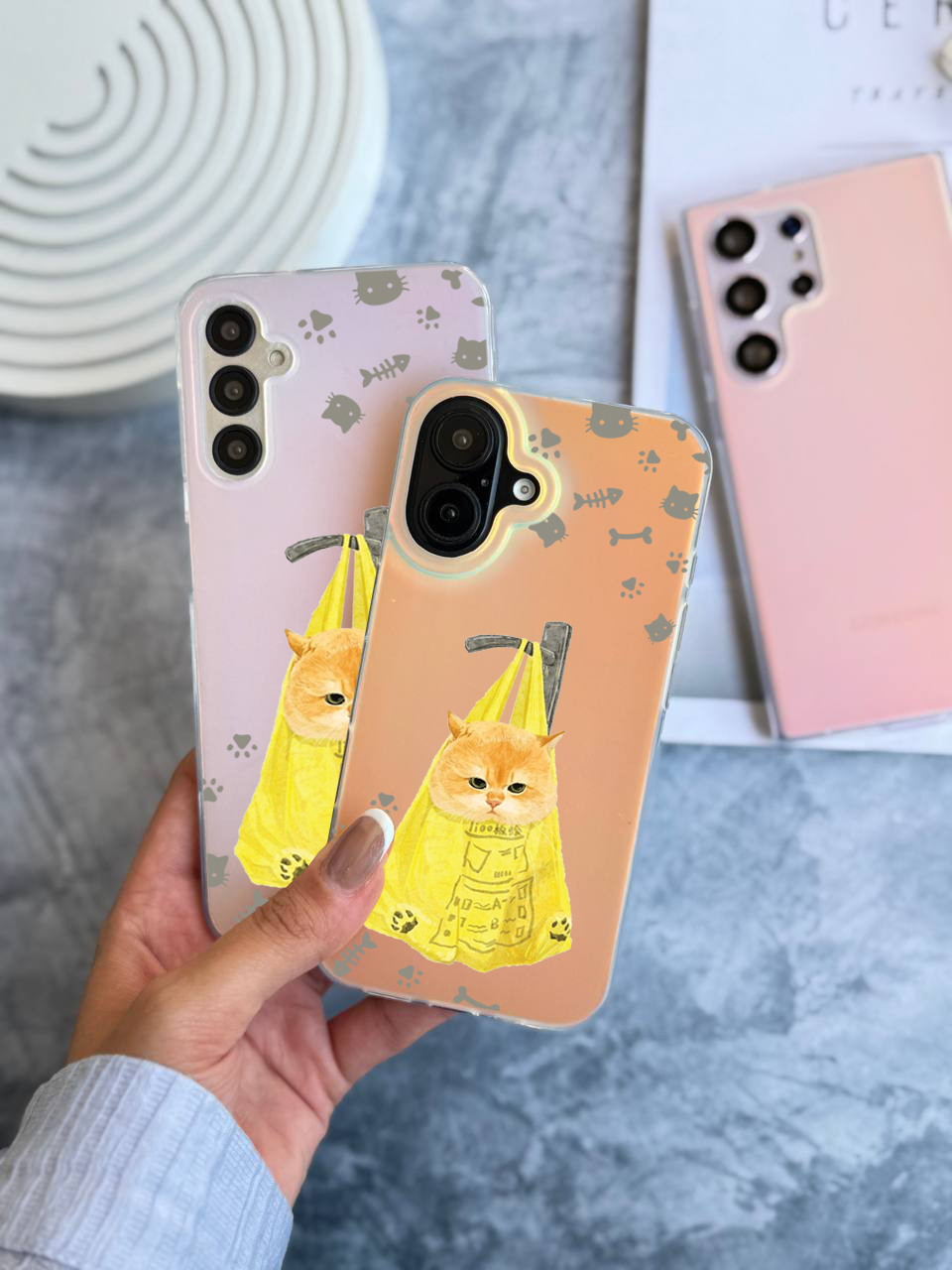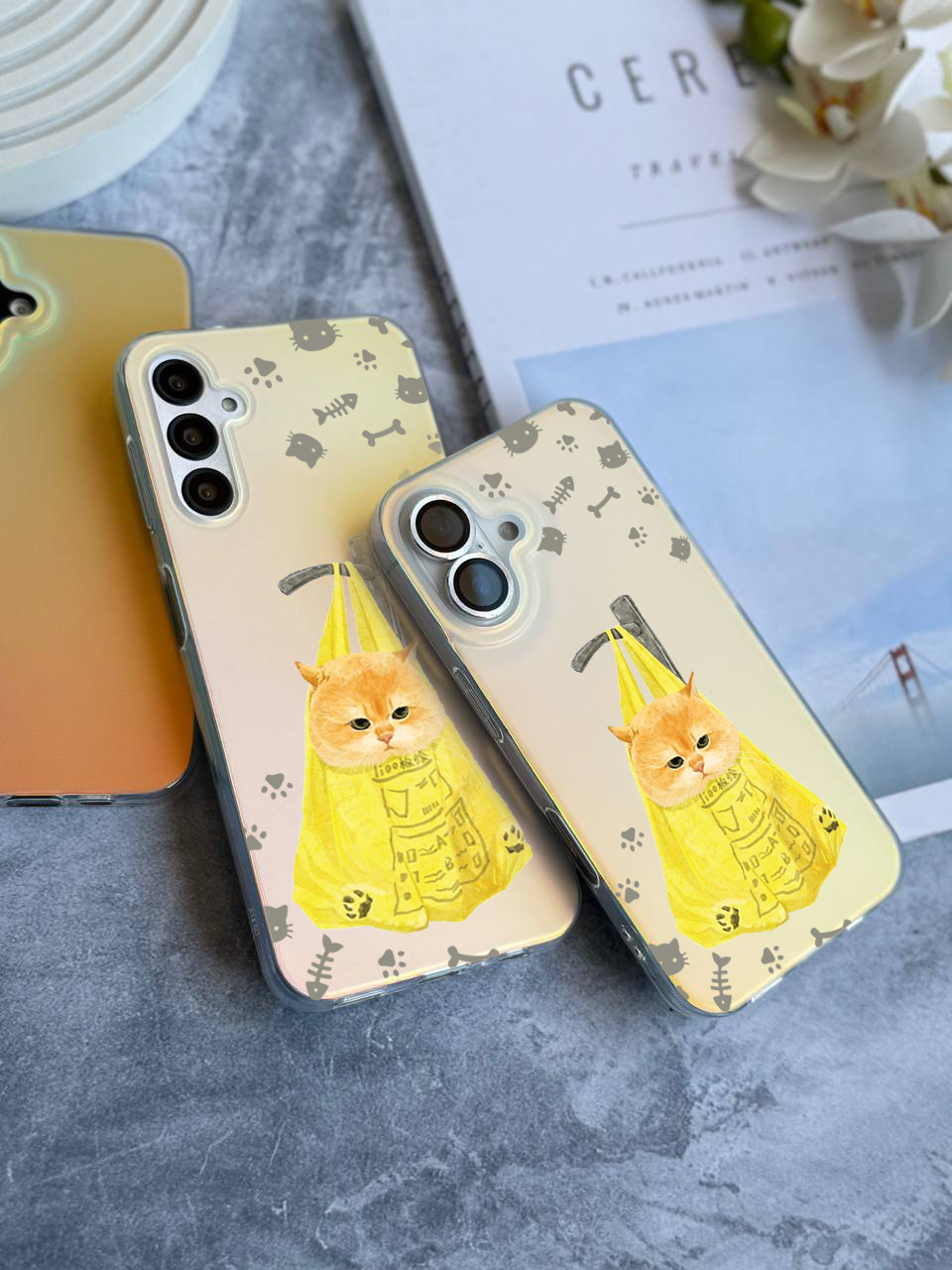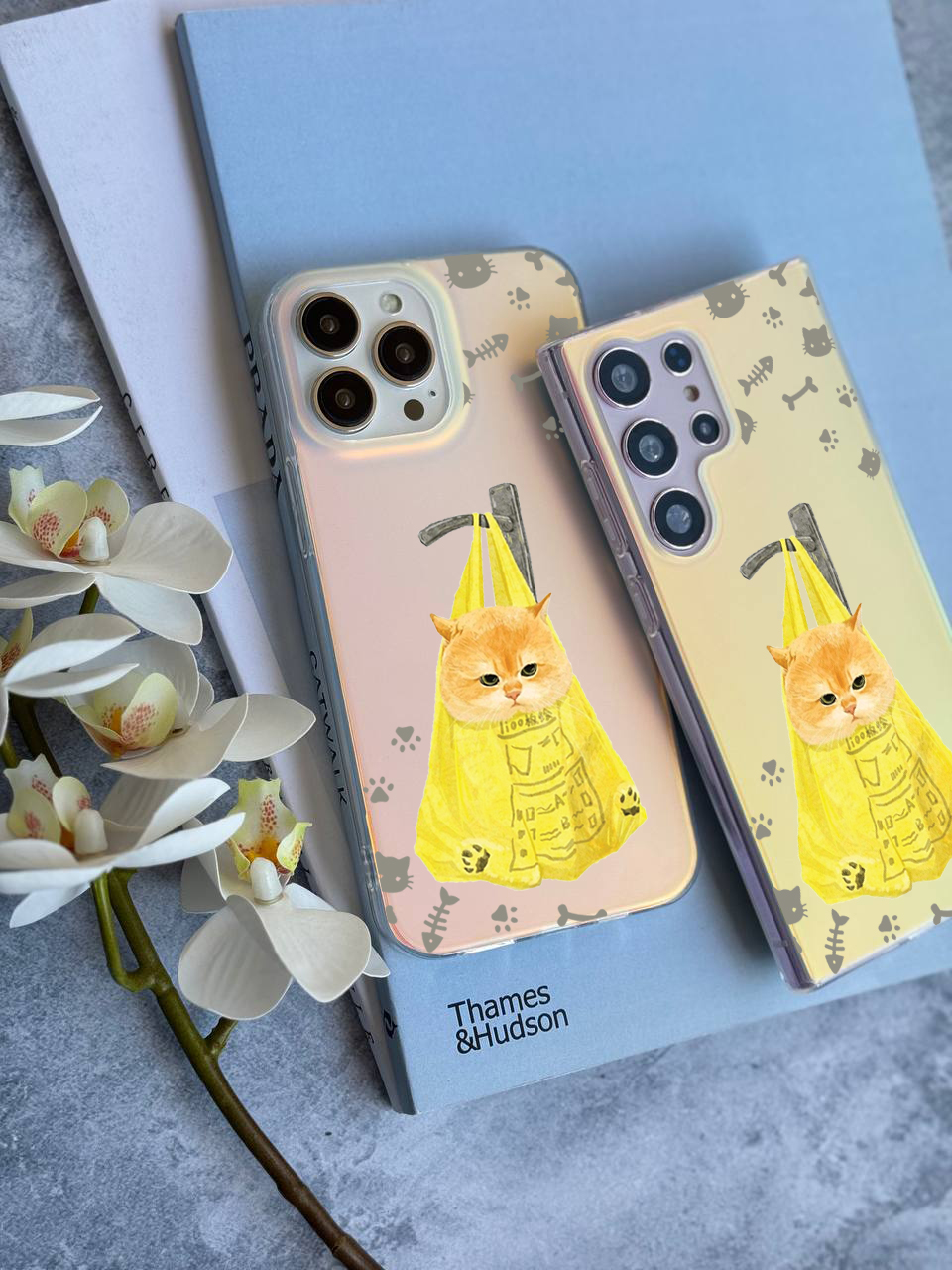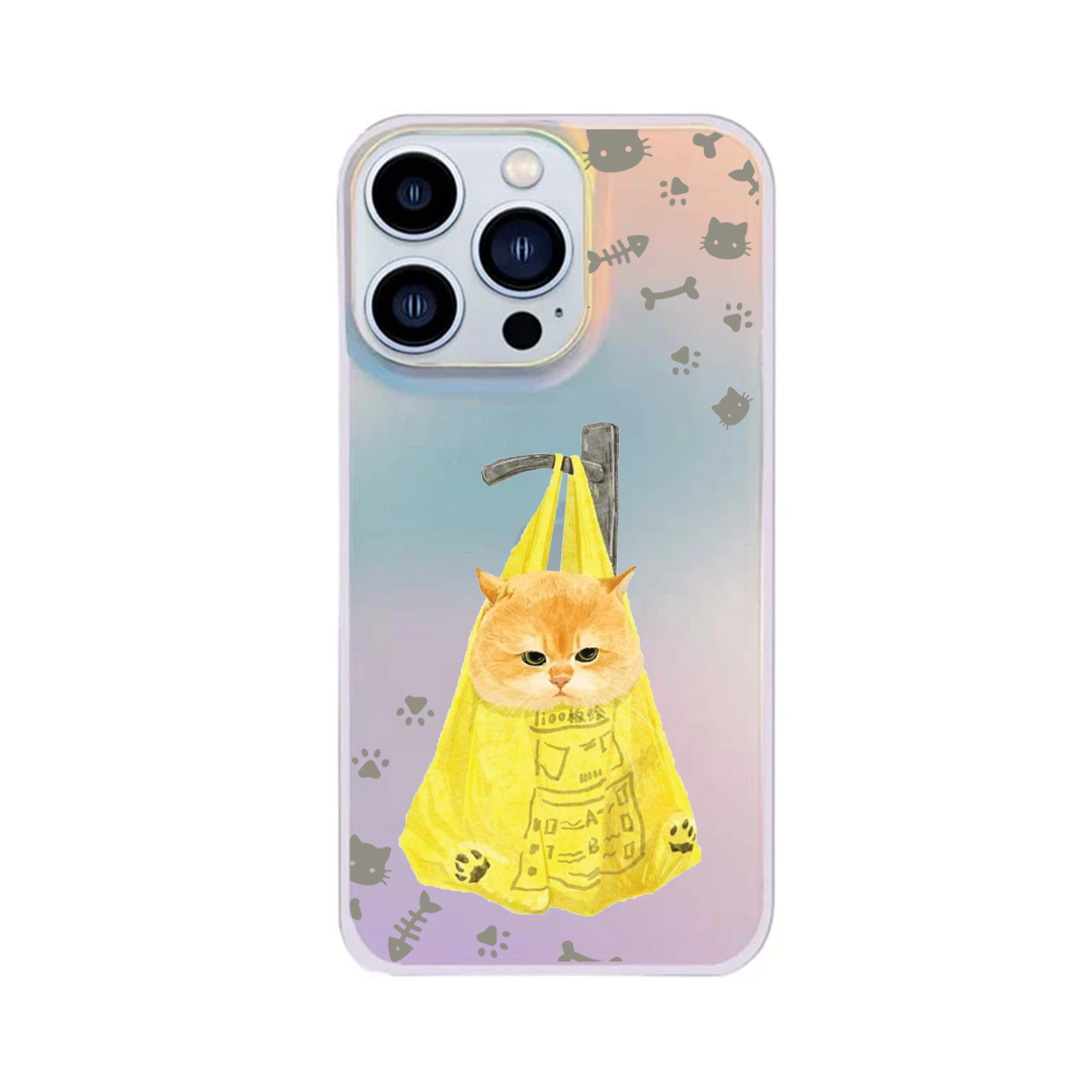 قاب موبایل سفارشی هولوگرامی مات | گربه نارنجی (کد 0487)