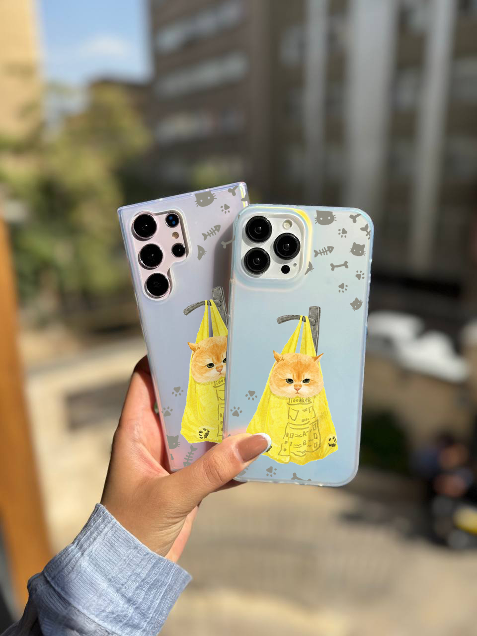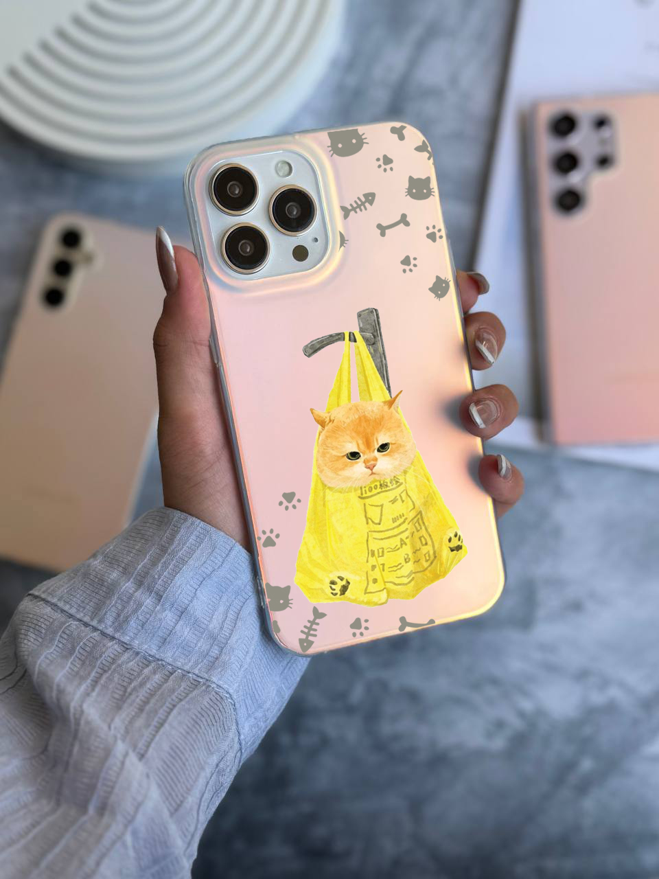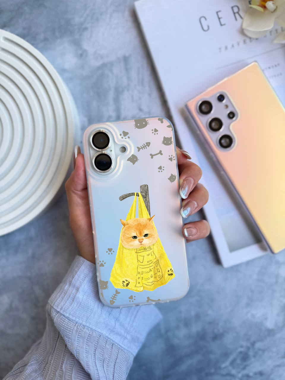 قاب موبایل سفارشی هولوگرامی مات | گربه نارنجی (کد 0487)