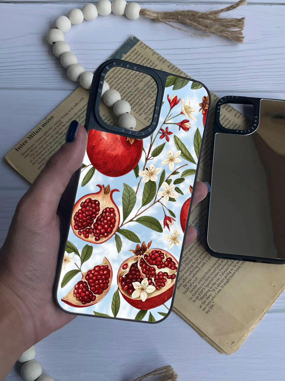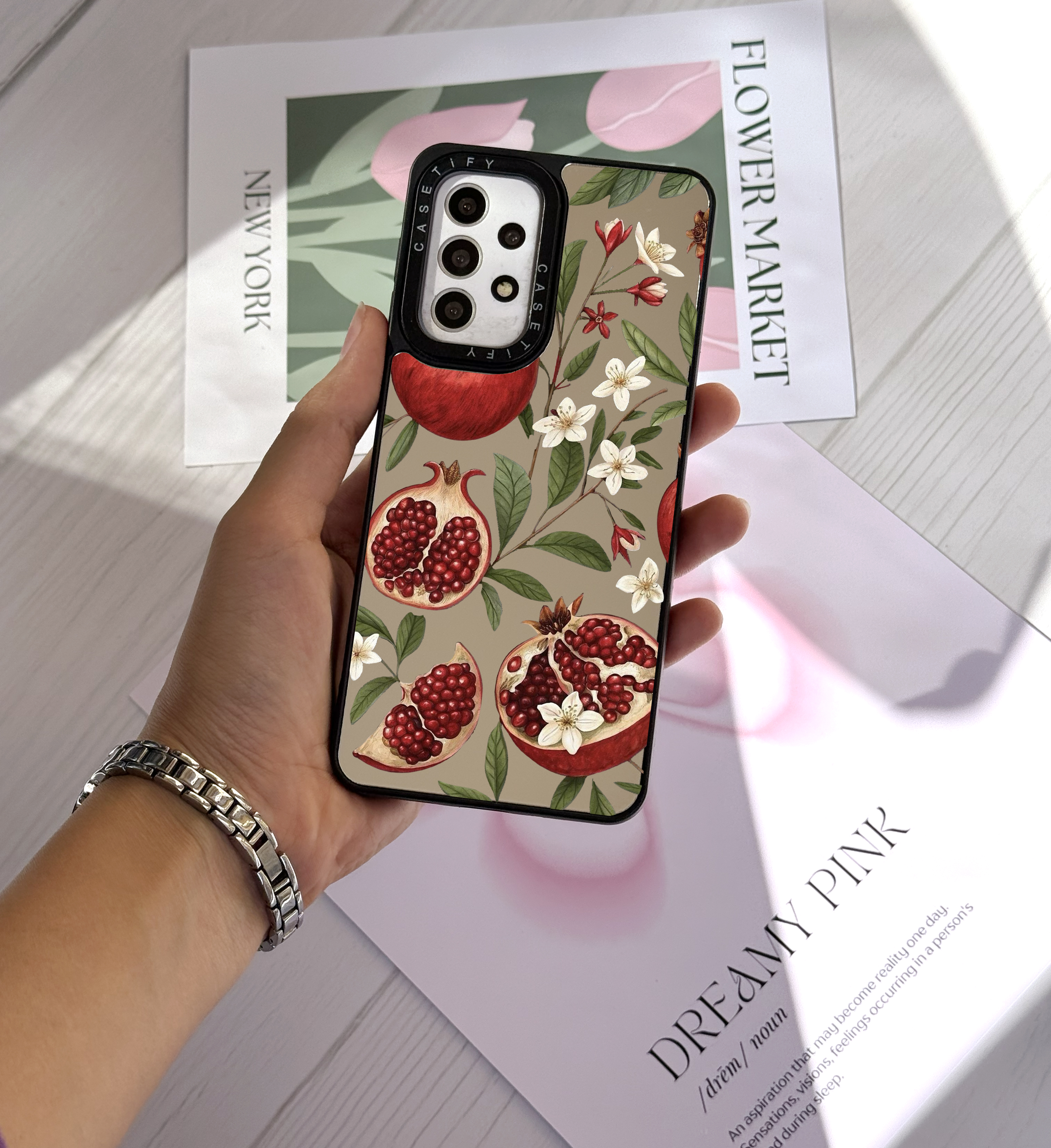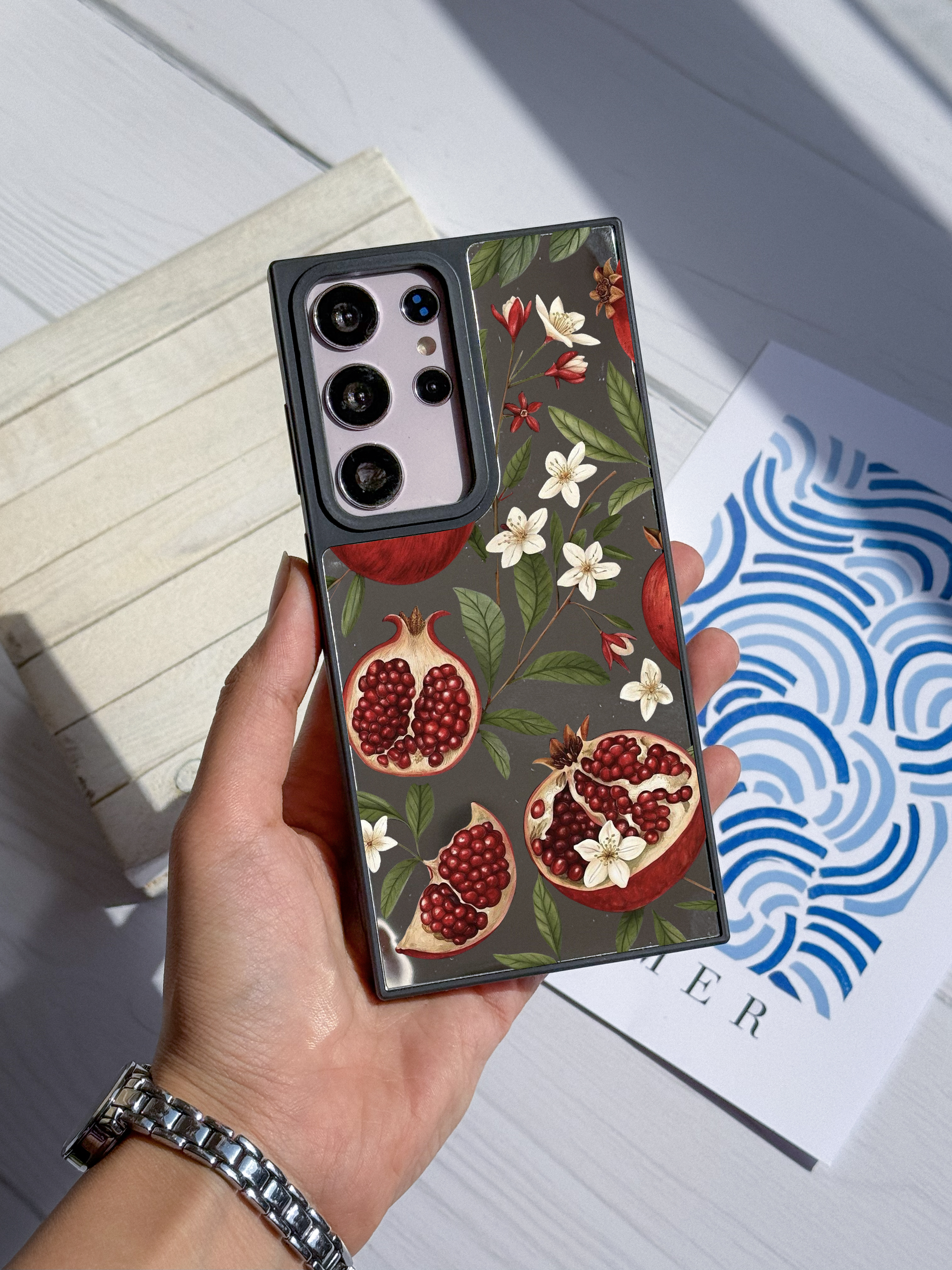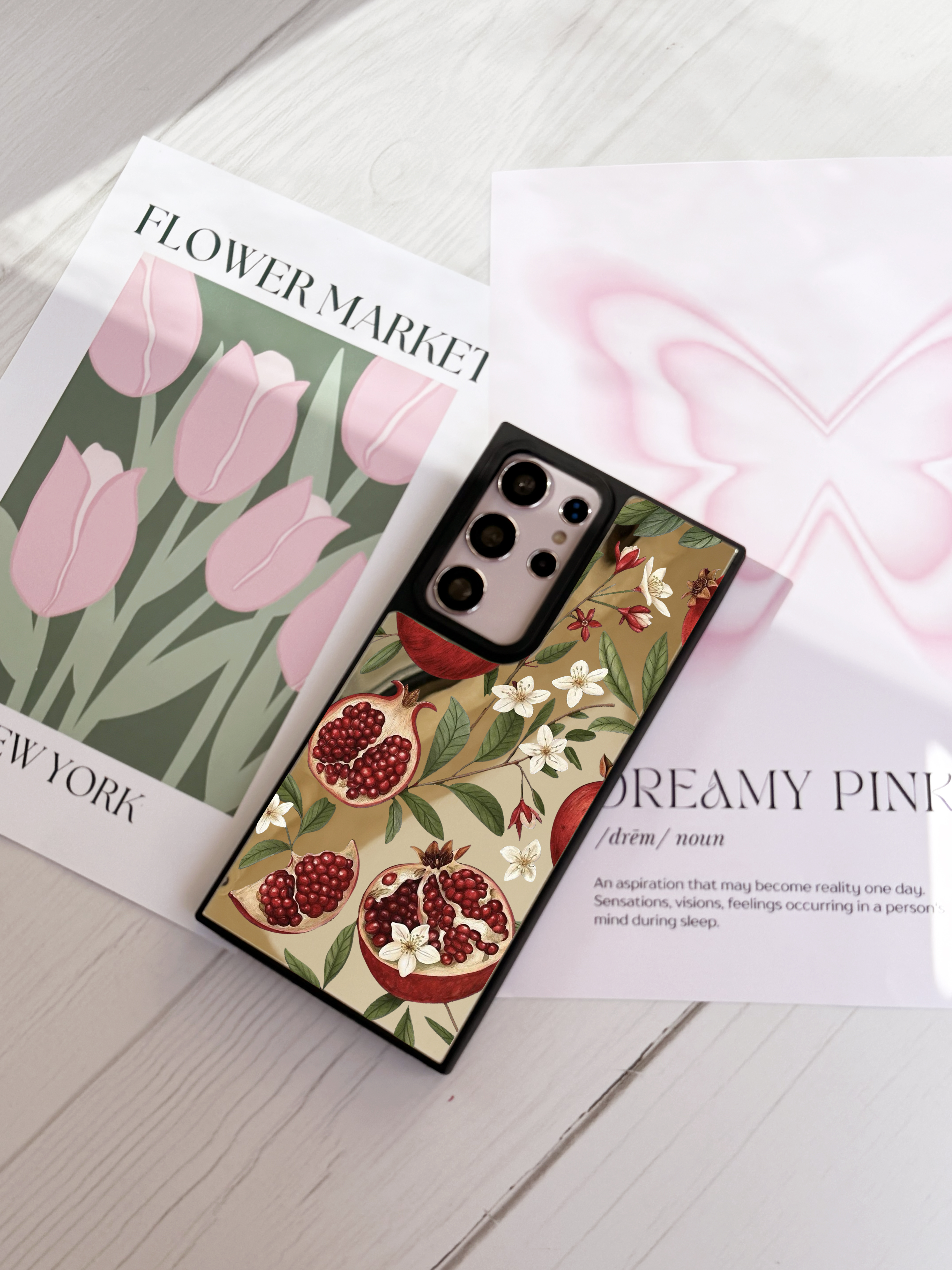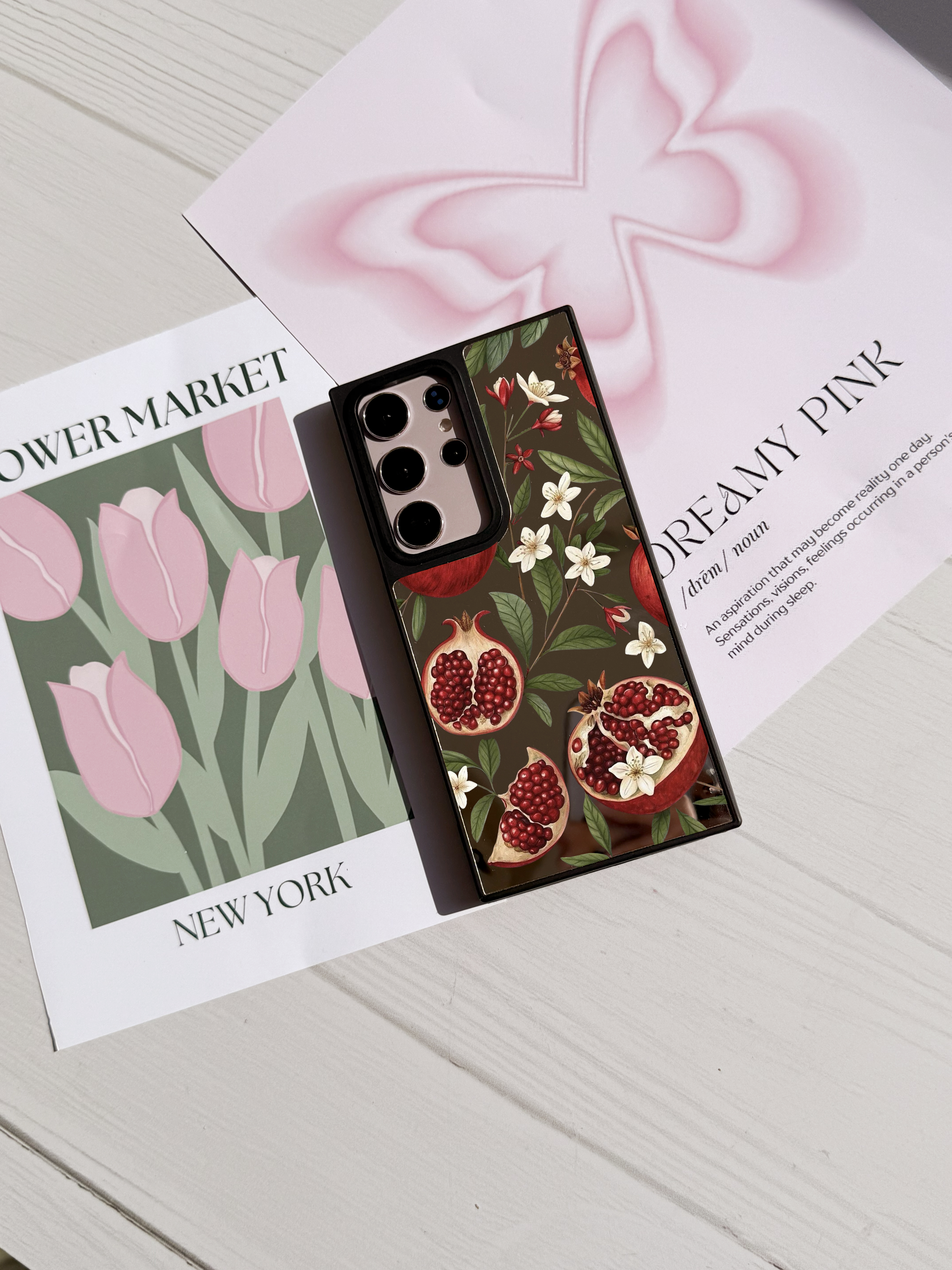 قاب موبایل سفارشی آینه ای | گل انار (کد 0525)